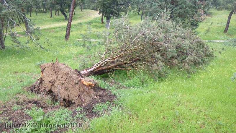 El resultado ha sido una cantidad insualmente alta de árboles caídos, por el viento, y por debilidad de la base. Muchos arrancados de raíz.